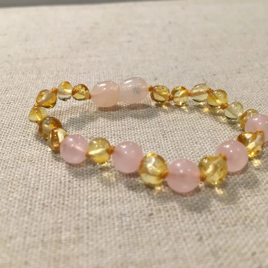 5.5 Inch Bracelet Pink Rose Quartz Polished Lemon Baltic Amber Baby Toddler