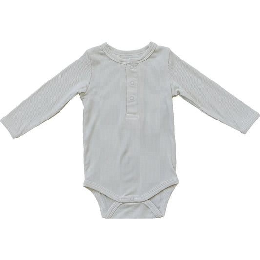 Cream Bamboo Snap Long Sleeve Ribbed Bodysuit