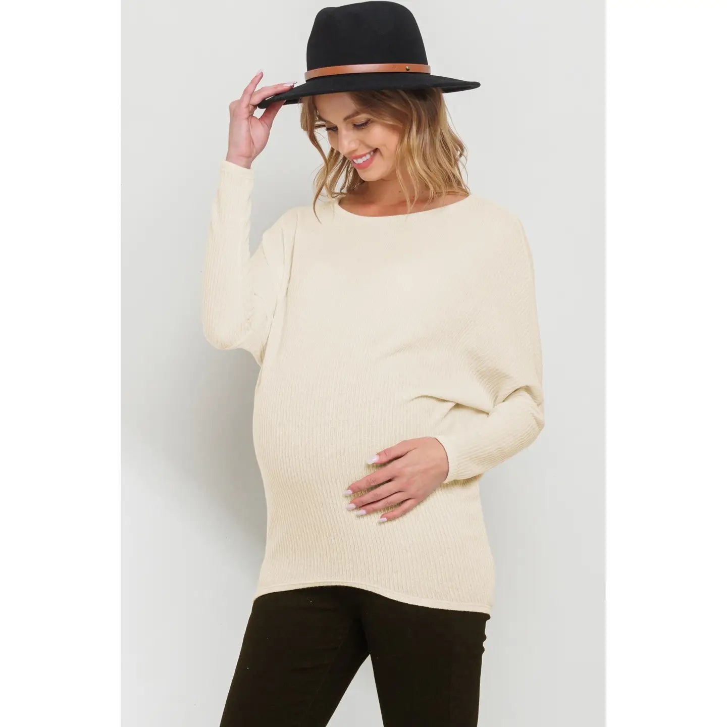 Oatmeal Boat Neck Long Sleeve Maternity Knit Top