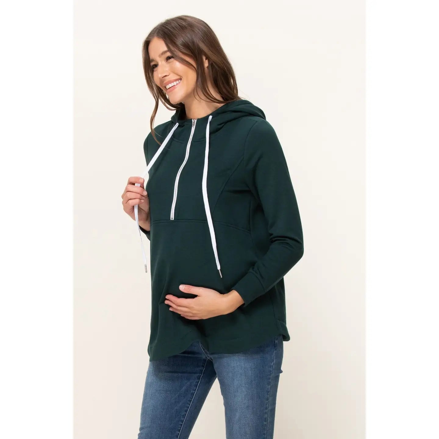 Green French Terry Half-Zip Maternity Nursing Hoodie