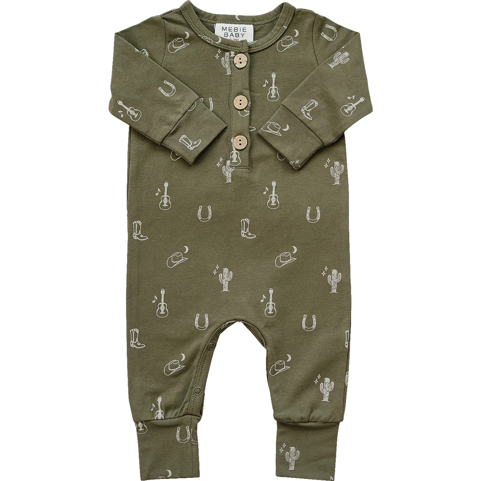 ntroducing our Nashville Long Sleeve Button Romper, the perfect blend of style and practicality for your little one. Designed for comfort and ease, this romper features a charming western pattern and a classic button-up front, making it a standout piece in any baby's wardrobe.
