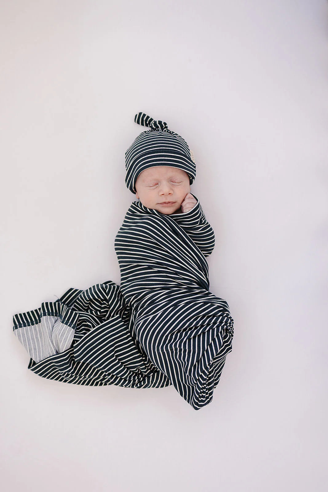 Navy Stripes Ribbed Bamboo Stretch Swaddle