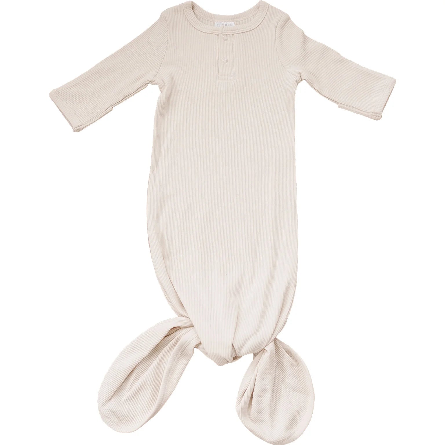 These gowns are size 0-3. The Mebie Baby Organic Knot Gown is a must-have for newborns, offering both comfort and convenience. Crafted from incredibly soft organic cotton, this gown is designed to keep your little one cozy. With a range of gender-neutral designs and colors, it is suitable for any baby. The gown features practical elements such as fold-over hands, two snaps for easy on and off, and shoulder flaps for effortless dressing. The bottom can be conveniently tied and untied in a knot, allowing for quick and hassle-free diaper changes. Simplifying the process of dressing your baby, this gown combines functionality with style, making it an essential addition to your baby's wardrobe.